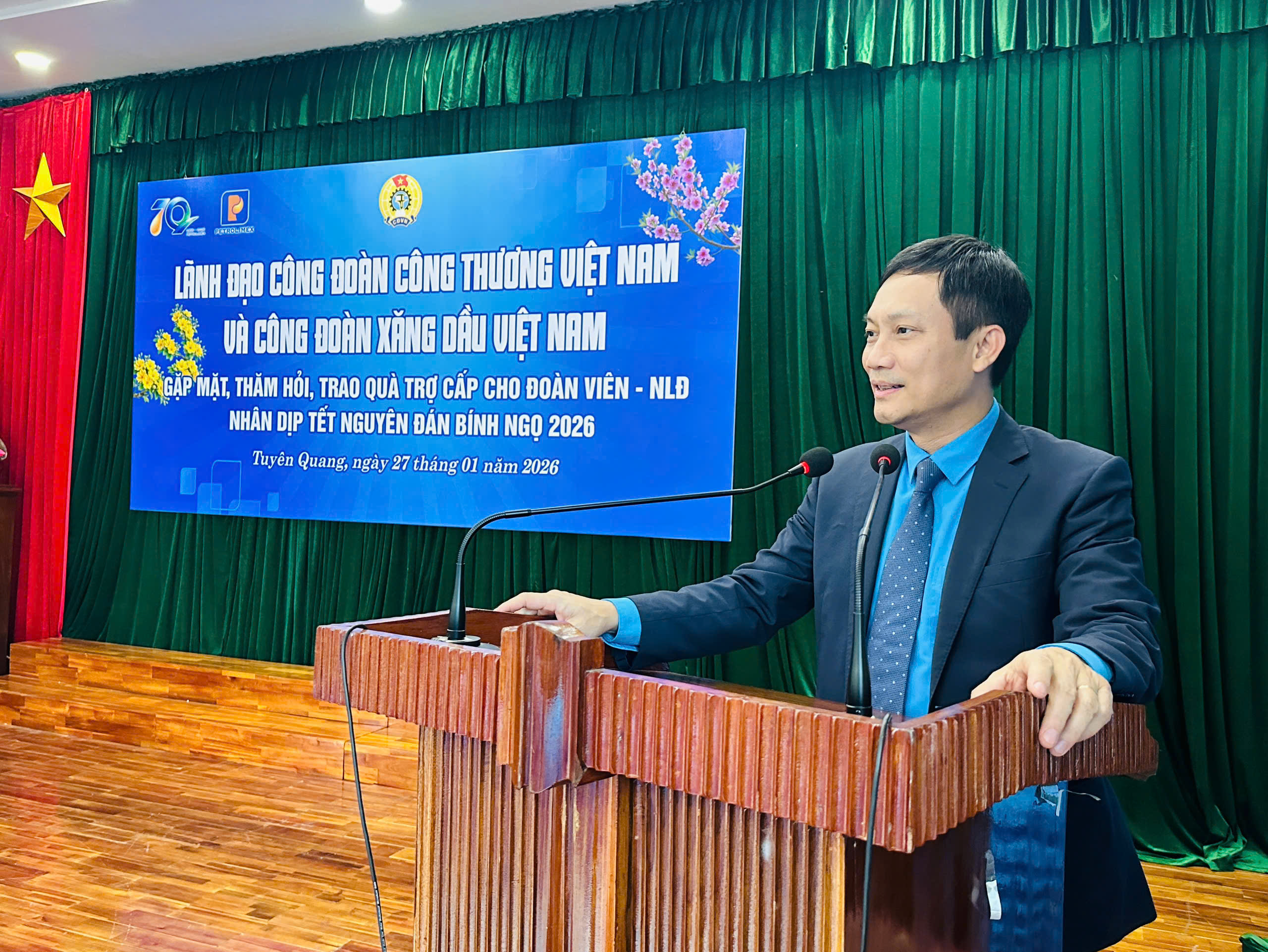 Thay mặt lãnh đạo và tập thể người lao động, đồng chí Vũ Trọng Trung - Bí thư Đảng ủy, Chủ tịch Petrolimex Tuyên Quang trân trọng cảm ơn sự quan tâm, động viên kịp thời của Công đoàn Công Thương Việt Nam và Công đoàn Xăng dầu Việt Nam; đồng thời khẳng định đây là nguồn động viên tinh thần to lớn để cán bộ, ĐV-NLĐ đơn vị tiếp tục nỗ lực, đoàn kết, hoàn thành tốt nhiệm vụ sản xuất kinh doanh, bảo đảm cung ứng xăng dầu ổn định, an toàn trên địa bàn.