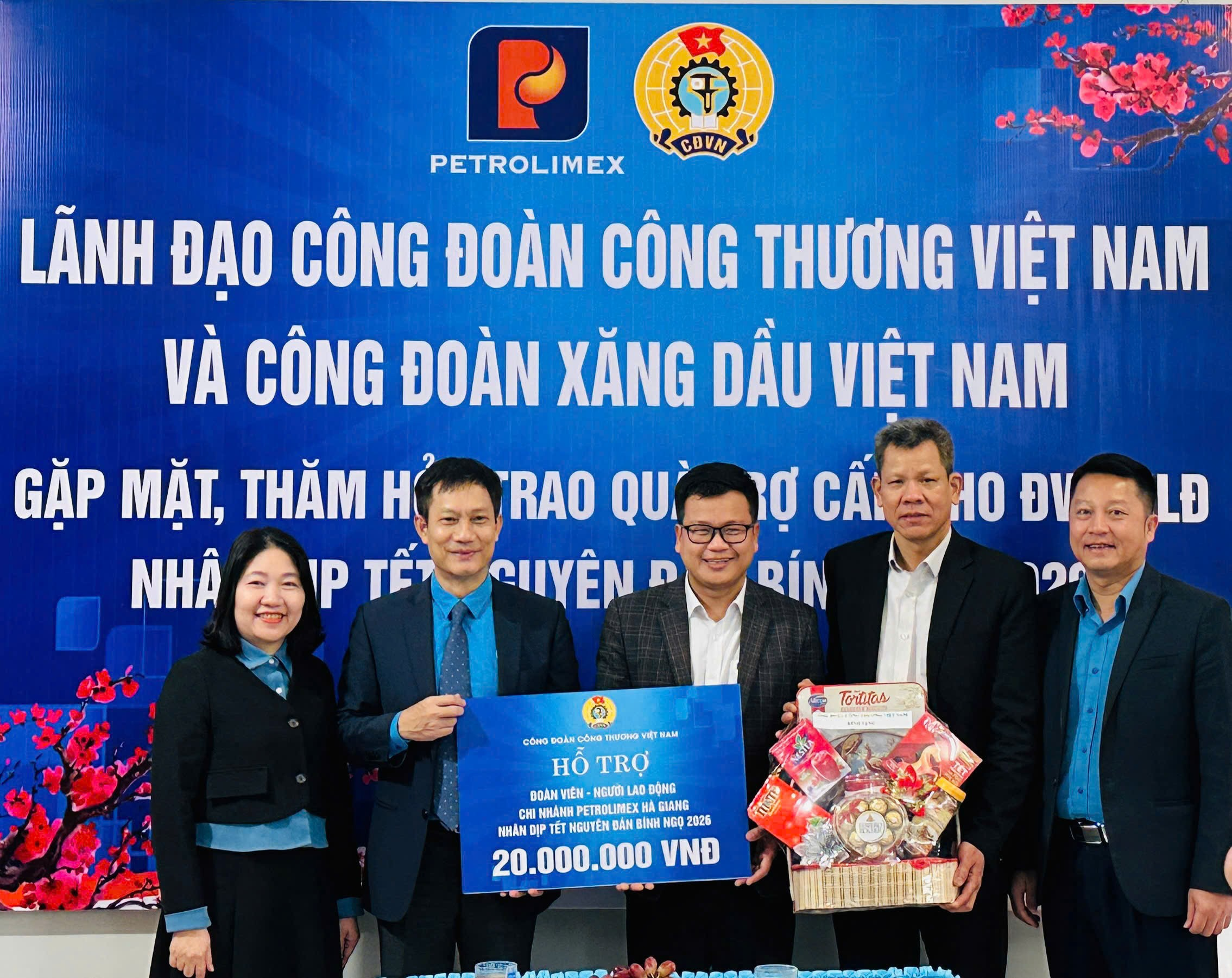 Nhân dịp này, Công đoàn Công Thương Việt Nam và Công đoàn Xăng dầu Việt Nam đã trao tặng 38 phần quà cho ĐV-NLĐ có hoàn cảnh khó khăn, mắc bệnh hiểm nghèo, tai nạn lao động; đồng thời trao quà chúc Tết cho tập thể Công ty TNHH MTV Petrolimex Tuyên Quang và Chi nhánh Petrolimex Hà Giang, với tổng giá trị 80 triệu đồng.