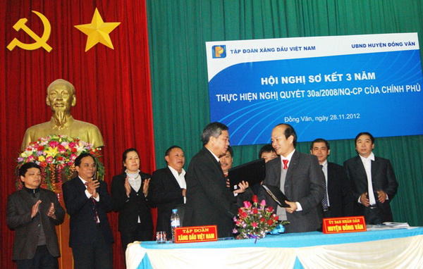 Ngày 14.9.2009, tại UBND huyện Đồng Văn (Hà Giang), Tổng công ty Xăng dầu Việt Nam (nay là Tập đoàn Xăng dầu Việt Nam) và UBND huyện Đồng Văn đã tổ chức Lễ ký biên bản thỏa thuận hỗ trợ cho huyện nghèo Đồng Văn để nhanh chóng giảm nghèo và phát triển kinh tế bền vững. Tổng kinh phí hỗ trợ đợt 1 là 7,5 tỷ đồng.